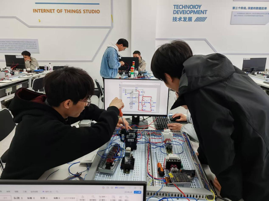 实战化教学模式:依托中心5000㎡创新空间、300余台套智能装备(含卡诺普、ABB、发那科等主流品牌机器人),打造与企业生产场景1:1还原的实训环境,采用“理论+实操+实战”三维培养体系,70%教学时间用于真设备、真项目实操,确保学员学完就能上手。