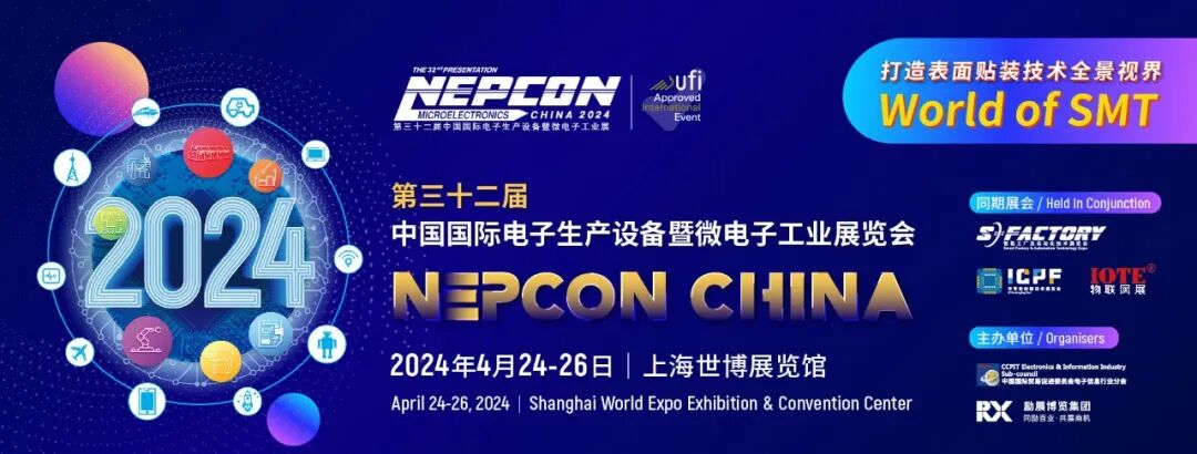 NEPCON China 2024 将于4月24日-26日在上海世博展览馆举办。展会秉持专业的创新理念,联合物联网展一体化AIoT呈现,打造表面贴装技术的全景视界!展会将网罗电子制造行业全品类国际一线品牌展商,展品范围覆盖:印刷、点胶、贴装、固化、回流焊、清洗、检测、返修等设备,呈现新产品和尖端技术、提供新的市场趋势和专家见解、帮助优化供应链,节约成本,提高竞争力!