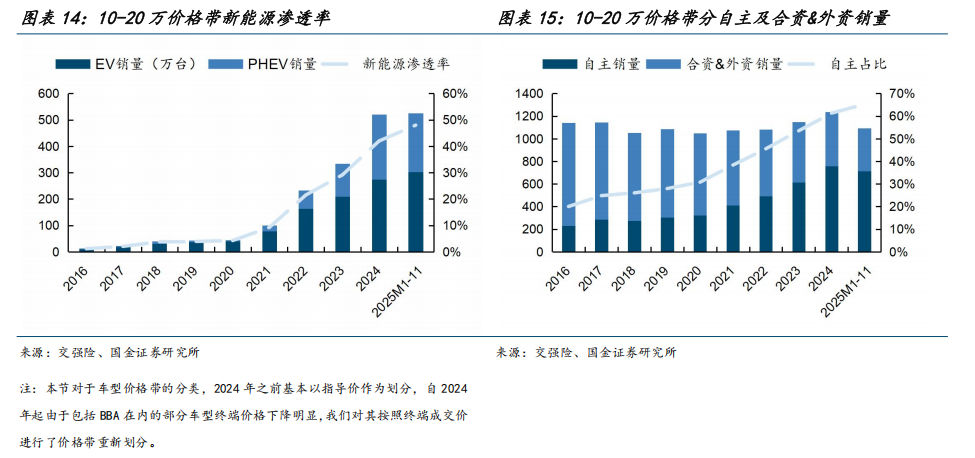 1.4.2.20-30w价格带:新能源渗透率近七成,自主车企份额近半