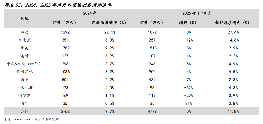 2.3.1.海外新能源加速渗透、中国车企产品加速导出,2026年新能源出口有望延续高增