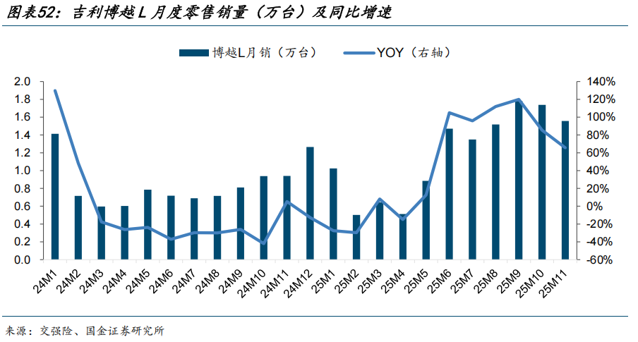 高端化潜力大,私有化合并有望带来效率提升。极氪具备底盘架构、三电、品牌标签等优势,补足短板,营销、用户运营等方面的改革初见成效,2025年三大品牌旗舰车型银河M9、领克900、极氪9X销量均超预期,我们认为旗舰车型成功后从高打低、高端新车成功概率大,极氪有望进入高端车第一梯队,同时吉利完成对极氪私有化合并后,有望带来内部效率显著提升、带动销量规模持续增长以及盈利向上。