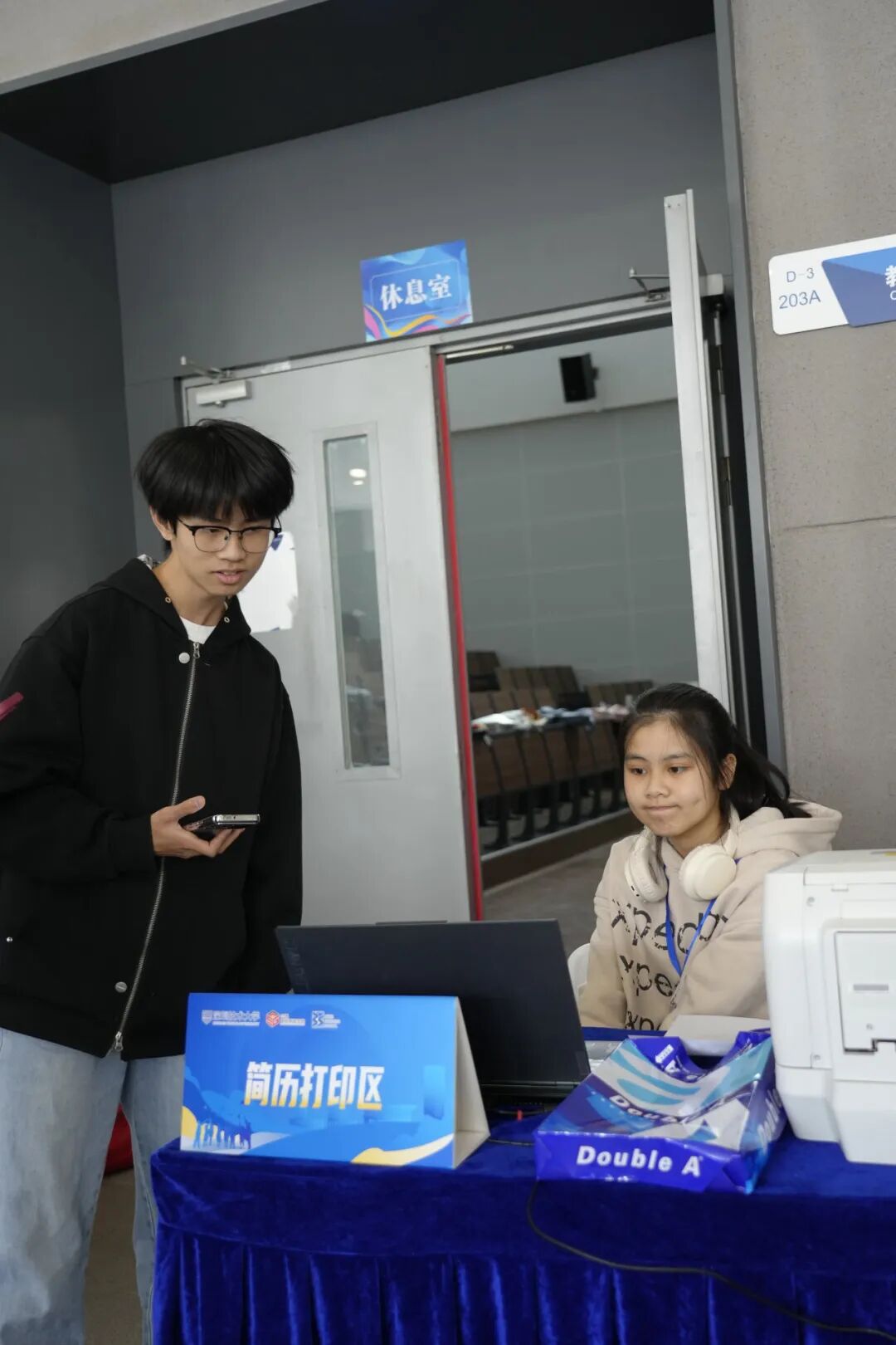 志愿者团队全程坚守岗位,引导入场秩序、协助企业布展、提供免费简历打印等暖心服务,用热情与细致保障活动顺畅推进。