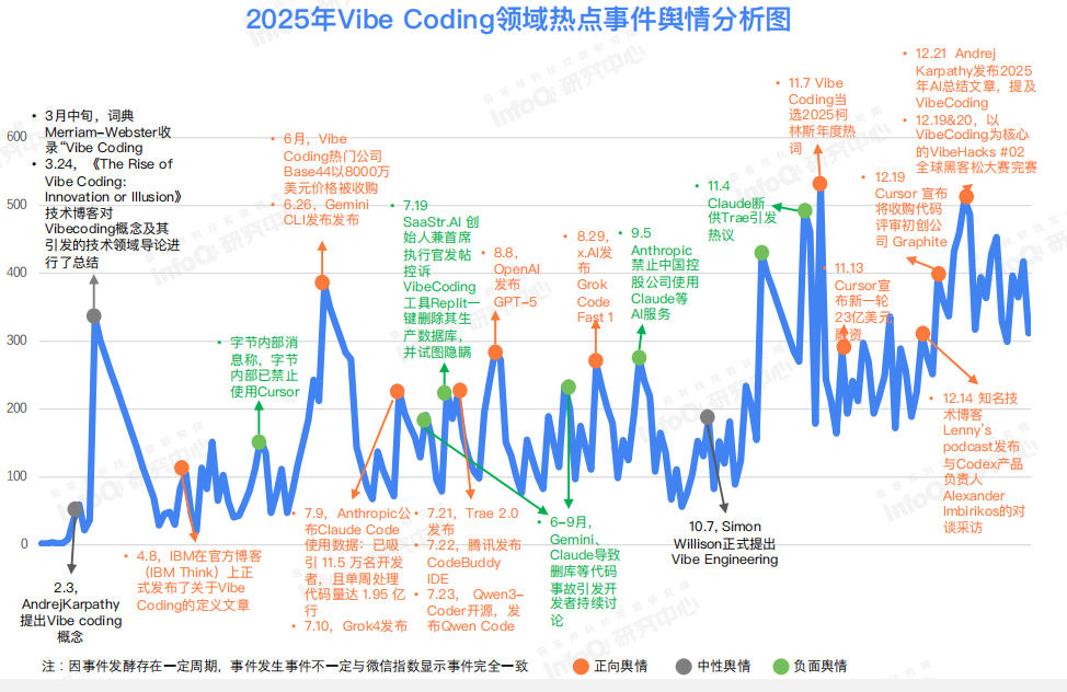 • Vibe Coding,成为贯穿 2025 年代码领域的关键词。一方面,部分开发者开始积极分享基于Vibe Coding的实践成果,展示个人或小团队在极短时间内完成原型构建、产品上线的案例,也催生了 Loveable、Replit等新产品、新公司,推动人人可开发的边界进一步前移。