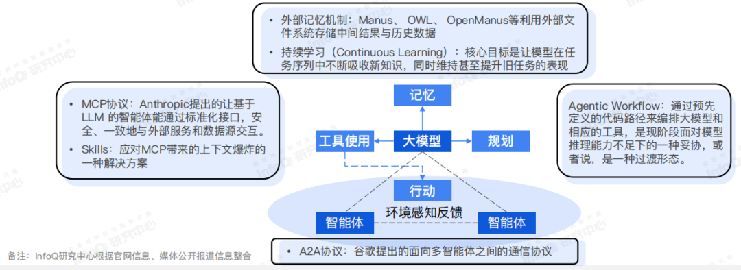 在InfoQ研究中心发布《2024 中国AI Agent应用研究报告》 中提到,现阶段的智能体应用,仍未长出足够的自主思考能力力以应对复杂场景。时过1年半,这句判断依然成立,但记忆、推理、工具使用都有了一些新的新的工程化的进展,以及也有模型开始探索从模型架构重构思考和记忆的方式,例如DeepSeek提出的Engram架构)。