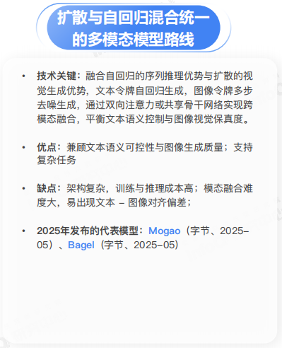 长久以来,多模态模型的理解和生成技术发展相对独立,并形成了两种不同的架构探索路径。但2025年,我们看到了以GPT-5、Gemini3 、Bagel 、VEO等开始探索统一理解和生成底座的多模态模型的迅速发展。同时我们也观察到了图像、语音、文字模态的技术路线的相对成熟,视频模态模型发展仍以视频理解和视频生成相对独立的技术发展路线为主。