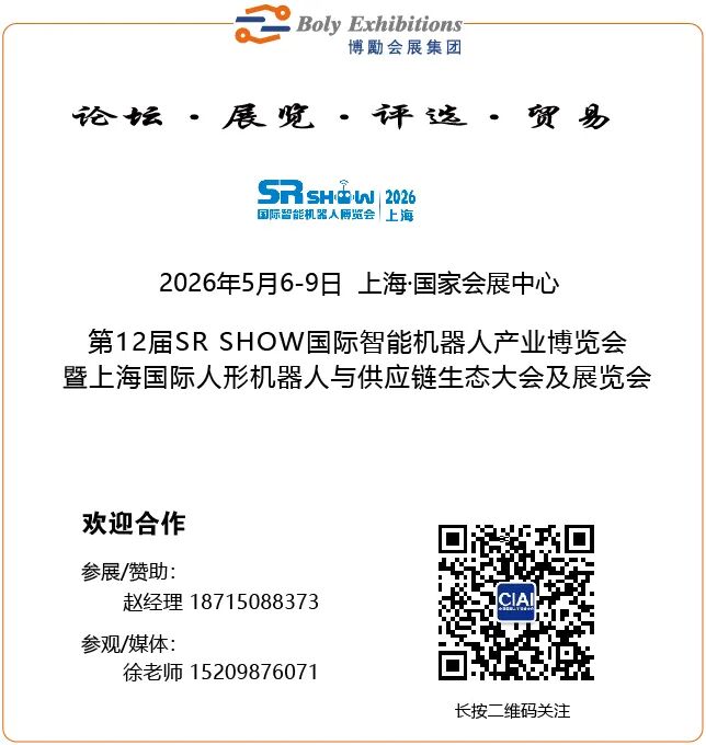 当全球人形机器人产业迈入 “ 技术验证向规模化商用 ” 的关键转折期,当中国以超 50% 的全球市场占比领跑行业 发展,一场聚焦全产业链协同、链接全球核心资源的专业盛会正蓄势待发——2026 第12届SR SHOW国际智能机器人产业博览会暨上海国际人形机器人与供应链生态大会及展览会,将于2026年5月 6-9日在国家会展中心(上海)举办。我们诚挚邀请您作为参展商或专业观众,共赴这场 “ 产业链协同创新、商业化机遇落地 ” 的行业盛宴。