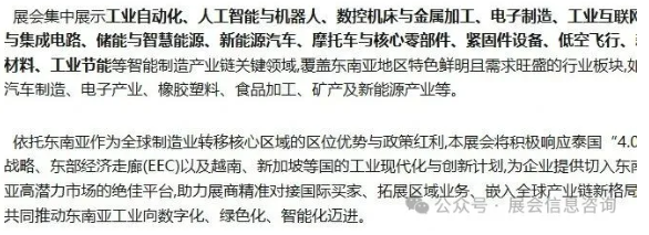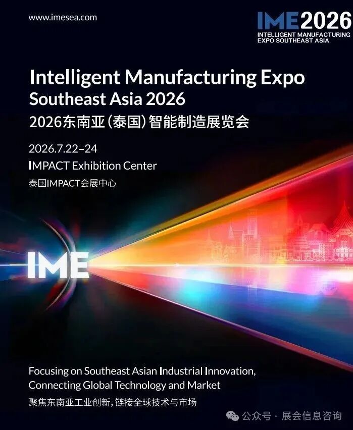 ➤2026东南亚(泰国)智能制造展览会将于2026年7月22日至24日在泰国IMPACT会展中心隆重举办。全球供应链重构期,东南亚已成制造业黄金蓝海!本届展会旨在助力企业把握东南亚产业升级与转型机遇,共享区域增长红利。