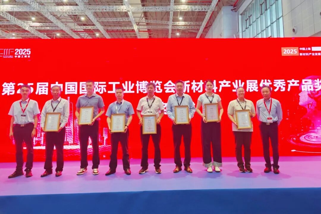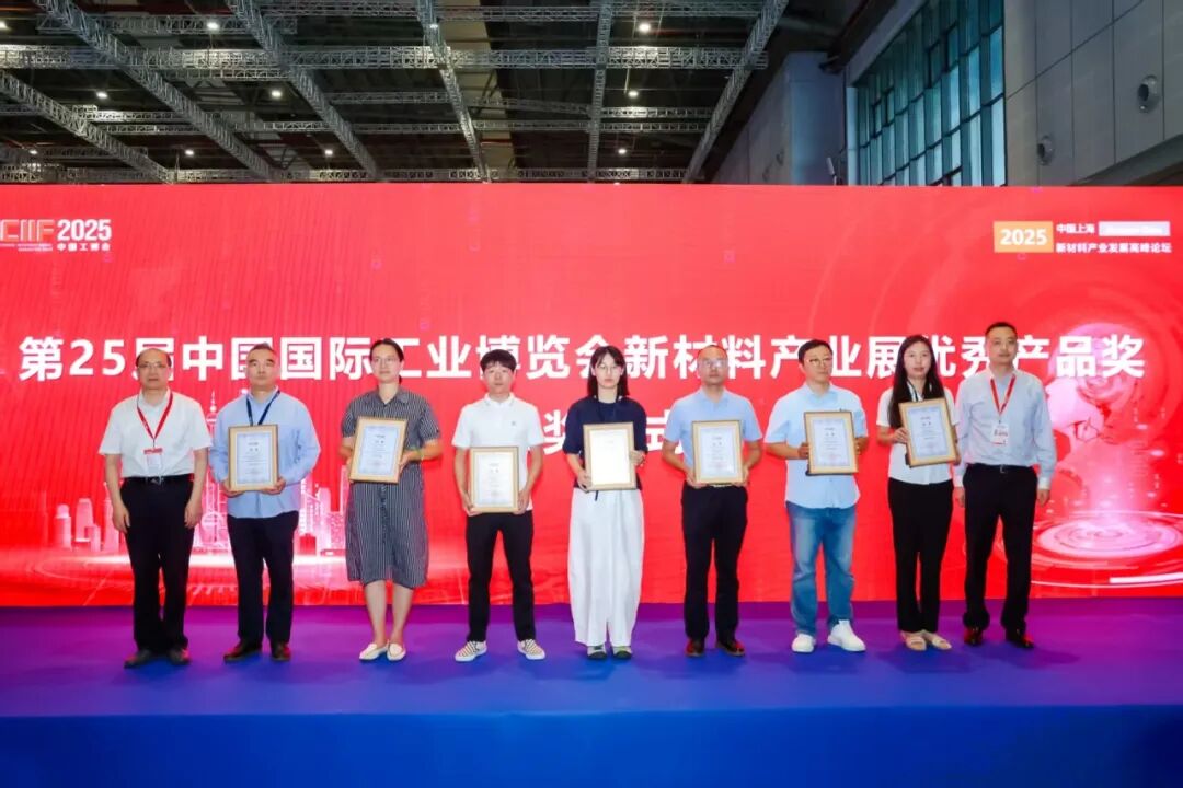 会上,上海市新材料协会副秘书长叶红宣读了《2025中国国际工业博览会新材料产业展优秀产品奖获奖名单》。上海市工经联副书记黄国伟、上海市经信委新材料处副处长金叶、上海市新材料协会秘书长何扣宝、上海工业商务展览有限公司总经理助理陈叶琪分别为14家获奖企业颁奖。
