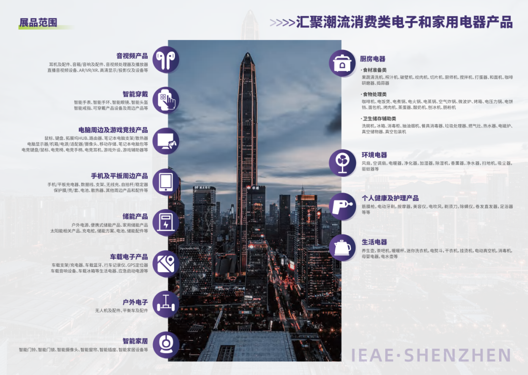 IEAE 2026深圳国际消费类电子及家用电器展将于2026年3月30日-4月1日在深圳会展中心(福田)盛大举办!展会以直观高效的产品展示和体验为基础,以为企业创造更多的商业机会为核心。联动行业优质资源,通过更具价值的活动和内容输出,推动电子电器行业的融合创新和高质量发展。