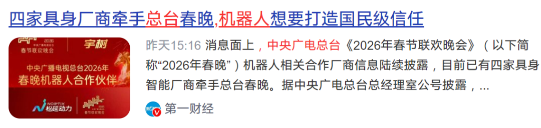 其中,松延动力担任人形机器人合作伙伴,银河通用机器人为具身大模型机器人合作方,魔法原子成为智能机器人战略合作伙伴。宇树科技已是第三次参与春晚,此前曾带来2021年的机器牛“犇犇”和2025年的人形机器人节目《秧BOT》。