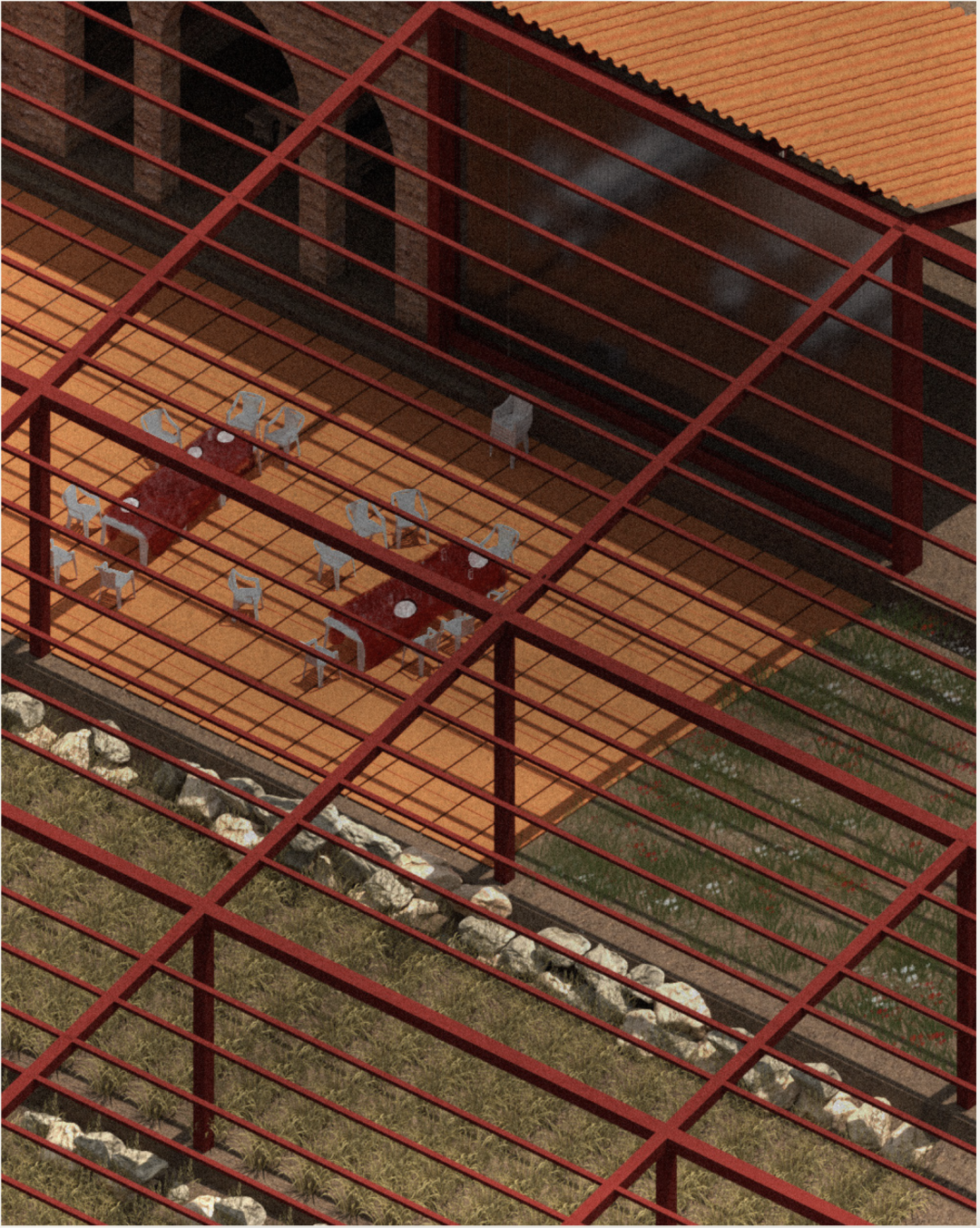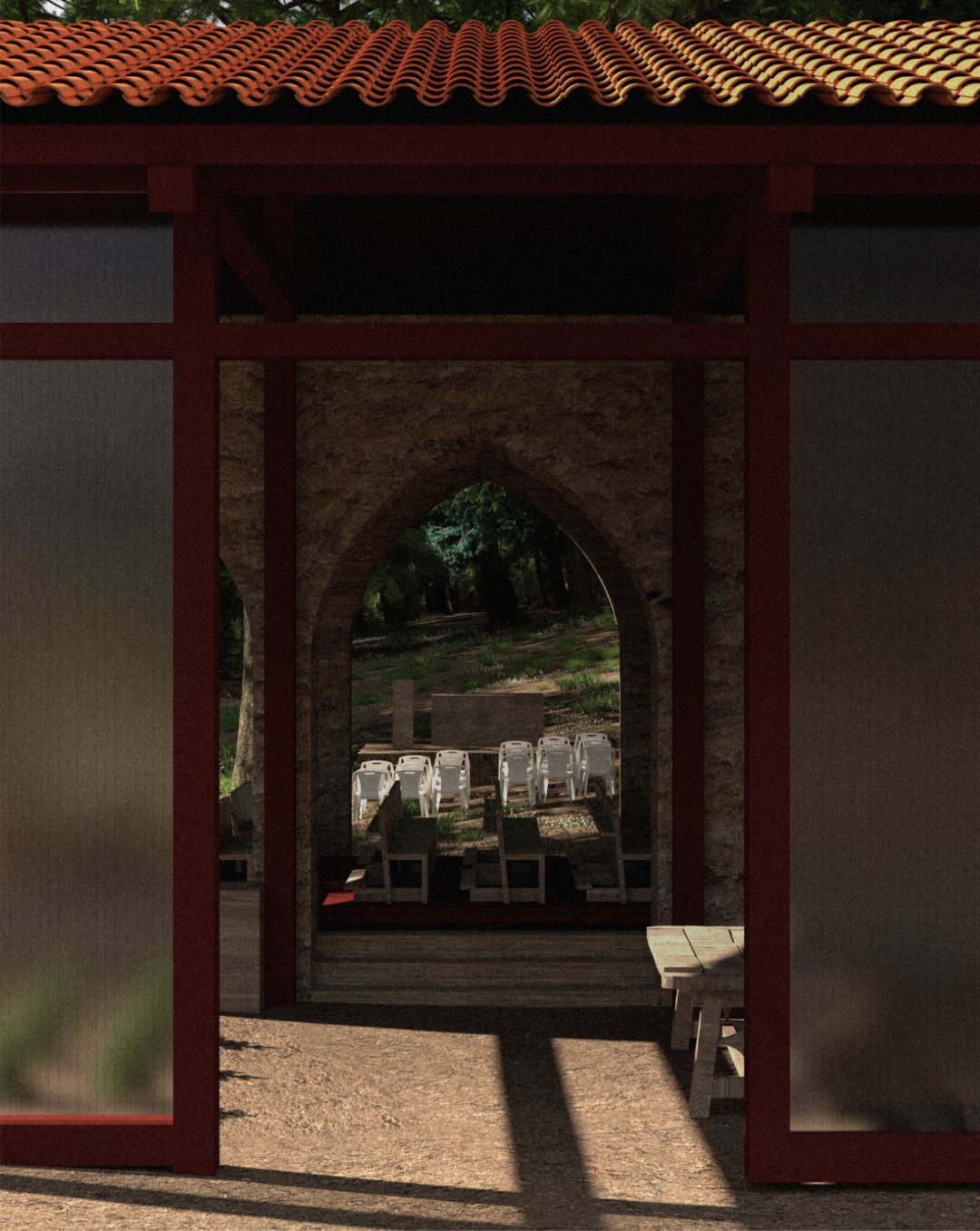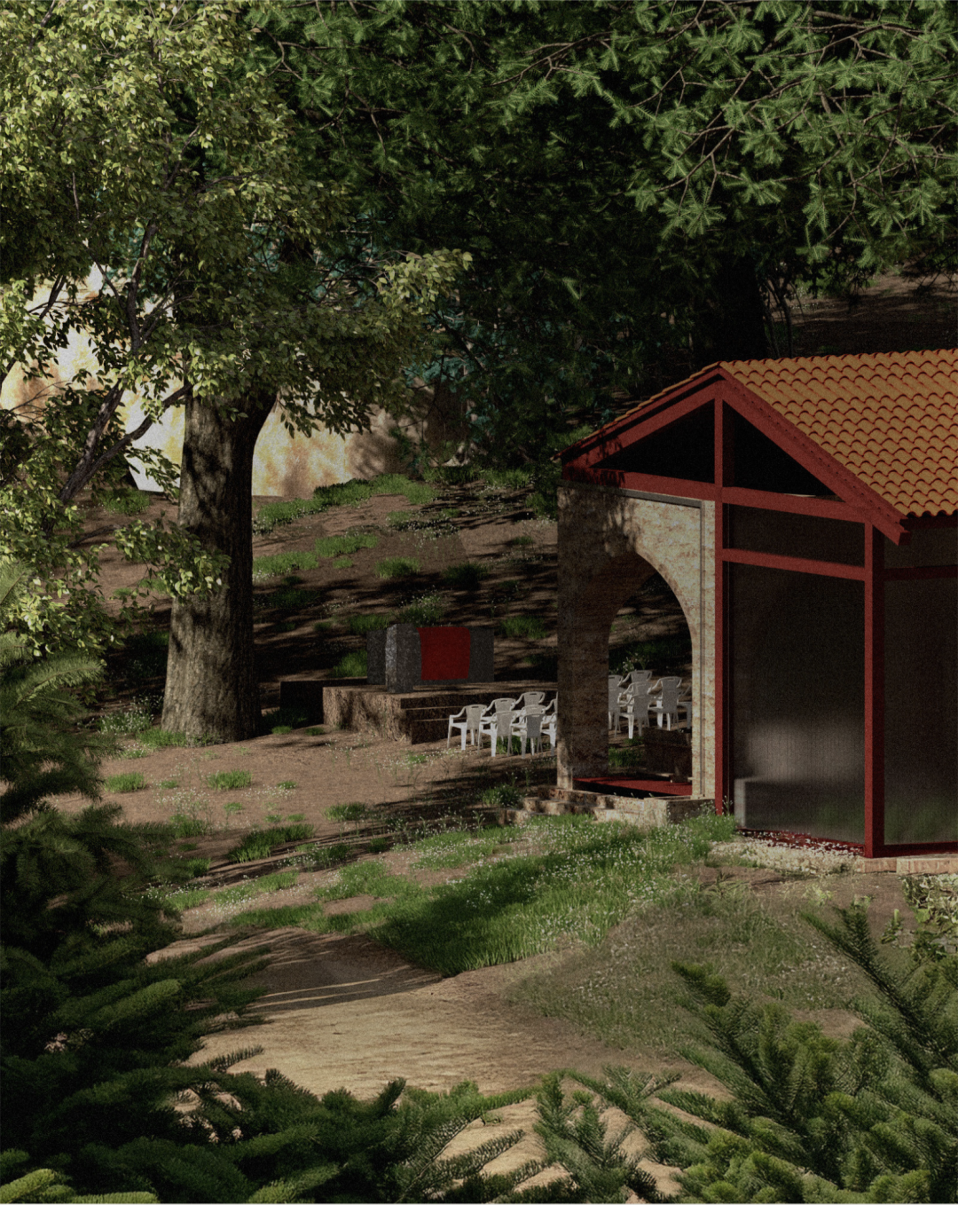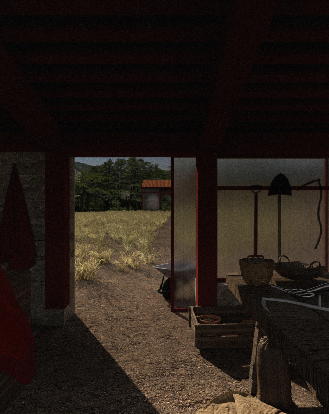 我聚焦于坦诺林雪松林500米的缓冲区,将这片过渡地带重新构想为一个活跃的公共空间,森林养护、仪式和农耕在此交汇。项目根据季节和功能梯度,提出了五项建筑干预措施:教堂苗圃、工具棚、带打谷亭的农舍、穆内准备区和市场。每项措施都将精神和农业实践融合在一起,以支持与森林的长期互动。