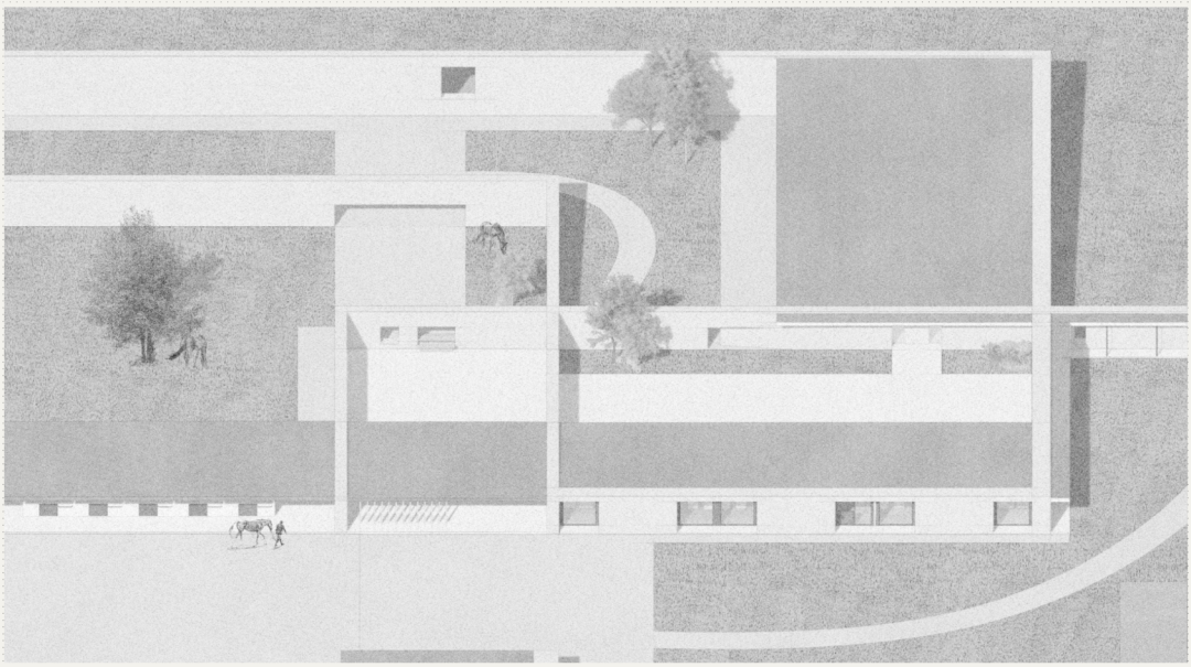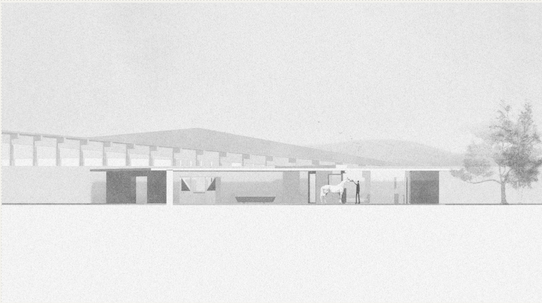 它提出了一种新的乡村发展模式:多功能、合作化、以关怀为根基。其核心是乡村公共空间,汇聚居民、学生、马匹、护理人员、手工艺人和游客。该项目反思乡村韧性需要什么样的建筑?它表明,乡村的未来或许不在于怀旧或扩张,而在于人、动物和景观之间精心设计的关系。