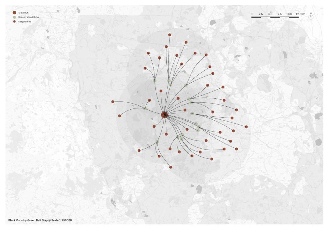 该项目旨在探讨围绕垃圾的文化和政治污名,并提出一种嵌入日常生活节奏的去中心化垃圾生态。该项目借鉴了开罗扎巴林(Zabbaleen)等超本地化实践,通过引入可重复使用的垃圾箱、节点连接网格和去中心化枢纽,挑战了英国自上而下的不透明体系。这些枢纽不仅作为收集点,还充当分类、修复、堆肥和非正式知识交流的场所,将垃圾重新纳入公众意识,并培育共同责任的文化。