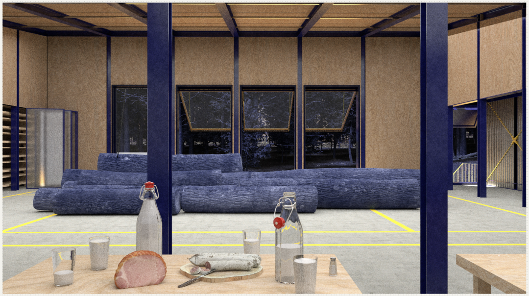 该项目充分利用宜家对社区主导的管理计划的现有支持,并具体化为宜家物流链上的干预网络,从采伐现场到分包加工厂,最终进入全球消费者家中,如同特洛伊木马,旨在改变消费者对森林的认知。遵循米尔恰·伊利亚德(Mircea Eliade)关于神圣入口的概念,这些干预措施抽象化了传统的马拉穆列什(Maramureș)木门,人们认为这是农民财产的神圣象征。整个流程遵循圣木仪式:忏悔、洗涤、工人睡眠区和圣木储藏室。在采伐期之外,该建筑群用于治理、庆典和工作坊,当地工匠在此为宜家制作高品质的圣木家具,呼吁整个供应链都认可木材的精神重量。