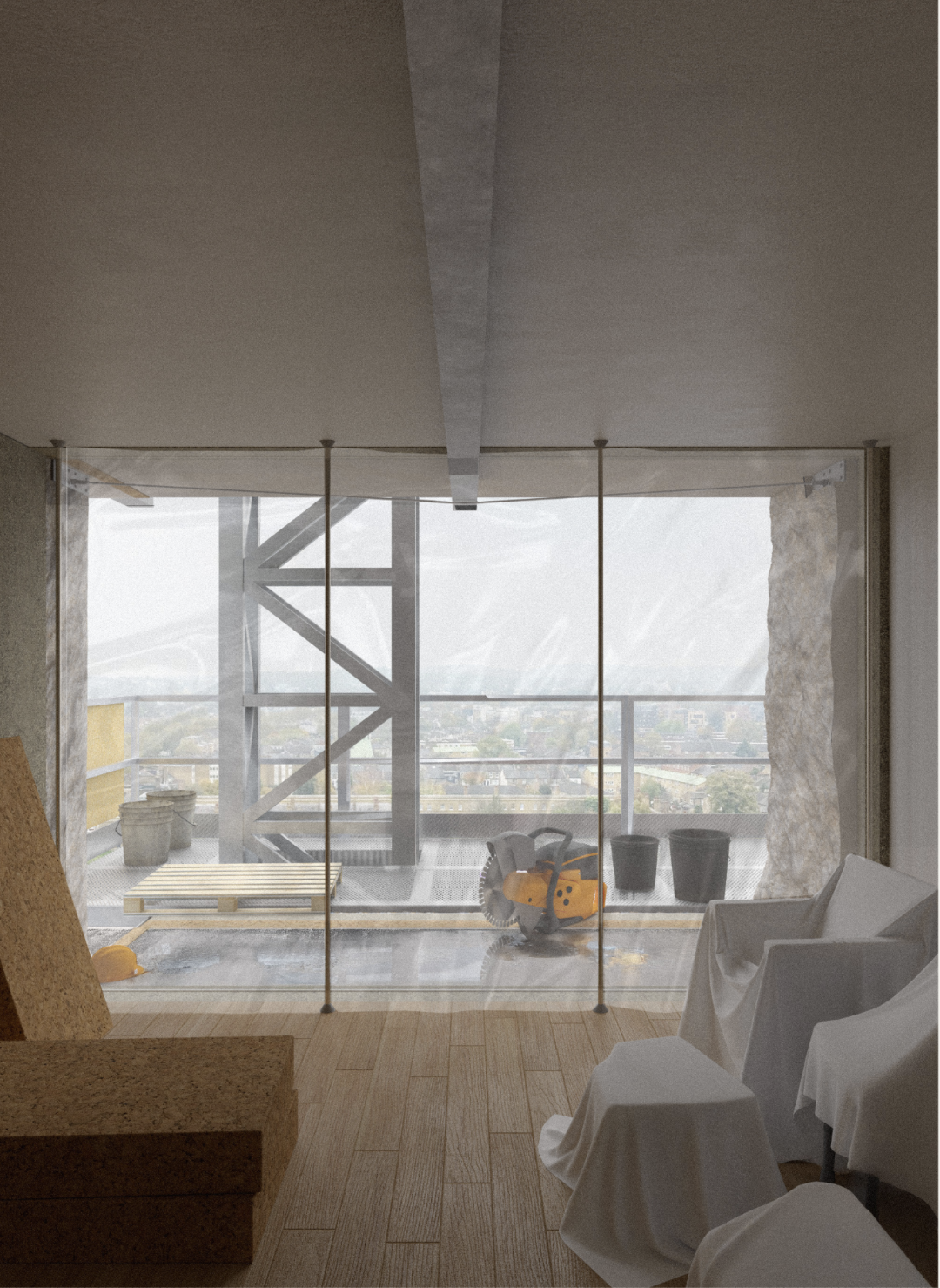 Callum 重新构想了带有外骨骼附加装置的大型面板系统建筑,提出了一种可扩展的拆除替代方案,并将冗余重新定义为机遇。