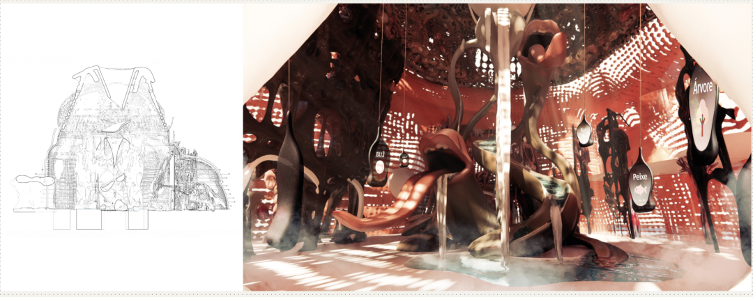 三个感官展馆以语言、味觉和集体记忆为中心,是这一方法的原型。它们被设计成柔软、热敏的环境,促进情感重建、共同创造和社区归属感。通过触觉墙、基于气味的学习和响应式材料,该项目提出了对岛屿的感官重塑:一片充满生活强度的场域,覆盖在以缺席和回归为特征的景观之上。沉浸式体验不再只是一场视觉盛宴,而是一种关怀,一种共情、重建连接和转变的工具。