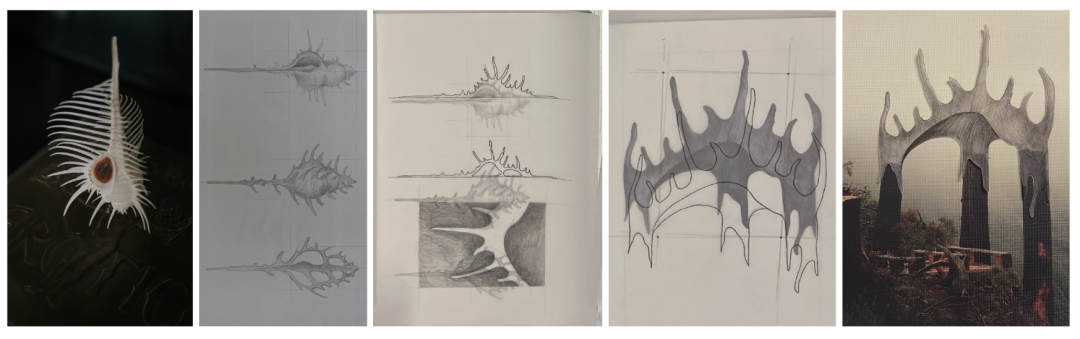 我的设计借鉴解剖学、艺术表现形式和衰败的生态系统,随着时间的推移而演变,提供临时的栖息地和反思的空间。这些干预模糊了永恒与无常、生长与瓦解之间的界限。作品并非抵制衰败,而是将建筑视为一个生命系统——流动、多孔且共生——自然元素与人造元素共存共变。它揭示了蜕变的脆弱之美。建筑并非作为一个物体,而是一个生命系统——不断蜕变、演进并共享。