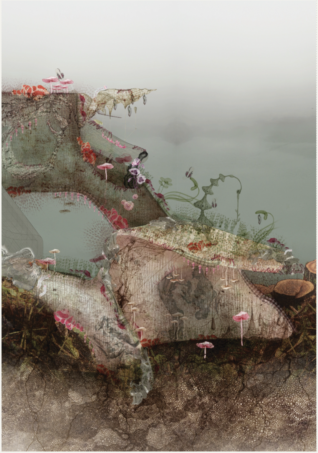 该项目通过衰败、再生以及有机物与人造物相互依存的视角,探索建筑的短暂性和变革性。我的作品旨在理解生命的循环、自然过程,以及建筑如何参与这些持续的蜕变。受生物过程、景观和象征性材料的启发,该项目探究建筑如何参与生死轮回。