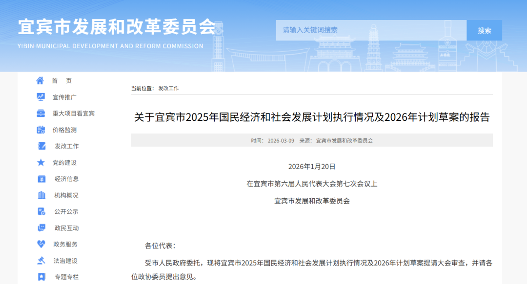 关于宜宾市2025年国民经济和社会发展计划执行情况及2026年计划草案的报告