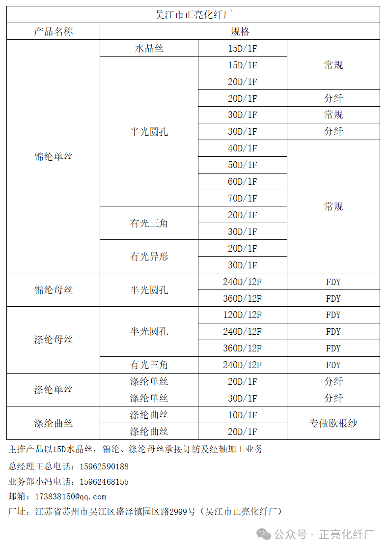 下图为吴江市正亮化纤厂主营产品,点击查看(最近石油价格低迷,化纤原料价格处于历史低位,有想法的客户请抓紧联系!)