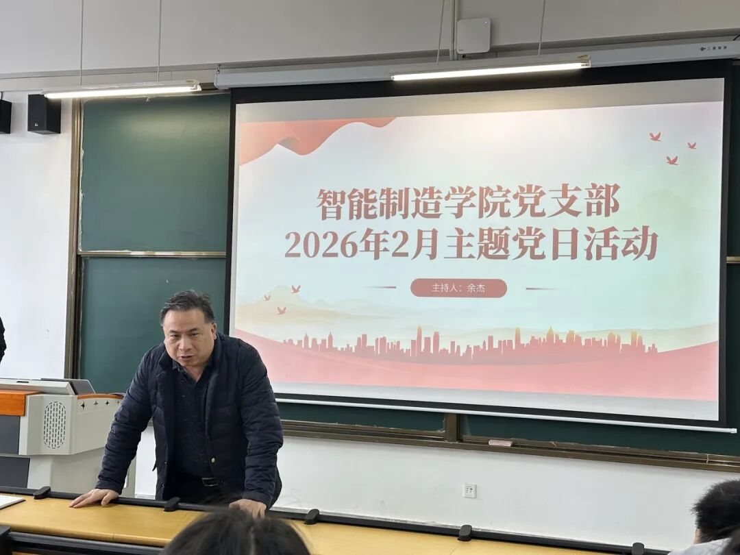 为持续强化理论武装、筑牢思想根基,推动党建与学院事业发展深度融合,2026年2月,智能制造学院党支部开展2月主题党日活动。智能制造学院党支部书记余杰主持活动,院长方子帆、副院长郭亮及全体党员参加。