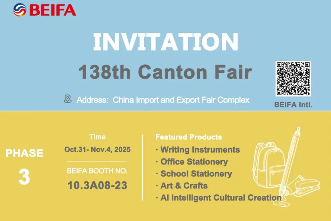 2025 年中国进出口商品交易会(广交会)三期将于 10 月 31 日盛大启幕!作为书写工具与文创行业的领军企业,贝发集团将携全品类创新产品惊艳亮相,为全球采购商、合作伙伴及行业同仁带来沉浸式的书写与文创体验,共探行业新机遇!