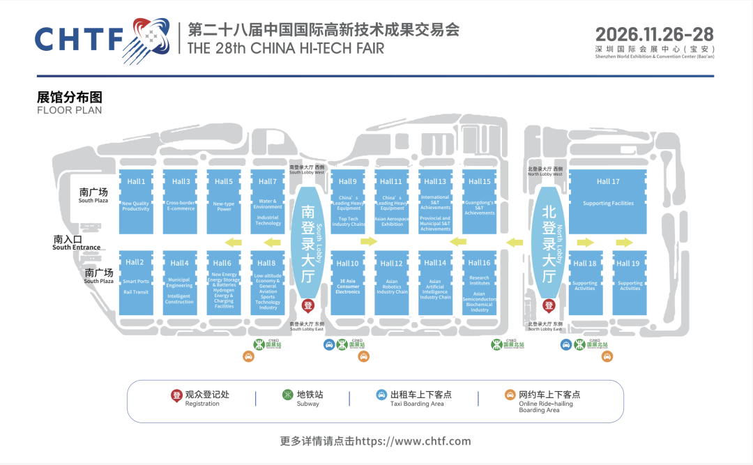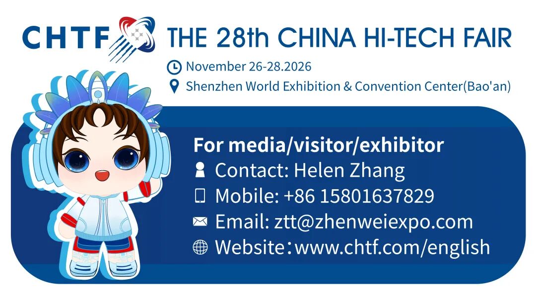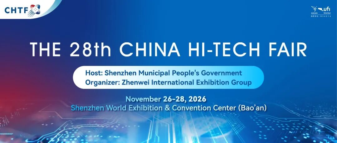Hosted by the Shenzhen Municipal People’s Government, and organized by Zhenwei International Exhibition Group, CHTF 2026 will take place on 26–28 November 2026atShenzhen World Exhibition & Convention Center (Bao’an).第二十八届中国国际高新技术成果交易会(CHTF 2026)将于2026年11月26—28日在深圳国际会展中心(宝安)举行。展会由深圳市人民政府主办,振威国际会展集团承办。Rooted in Shenzhen — one of the world’s most dynamic innovation hubs — CHTF serves as anational-level platform approved by the State Council of China, standing alongside the Canton Fair and CIIE as one of China’s three major national exhibitions.高交会是经国务院批准设立的国家级展会平台,与广交会、进博会并列为中国三大国家级展会。立足全球最具创新活力的城市之一——深圳,高交会是中国高新技术成果对外展示与交流的重要窗口。Focused on Future Industries
