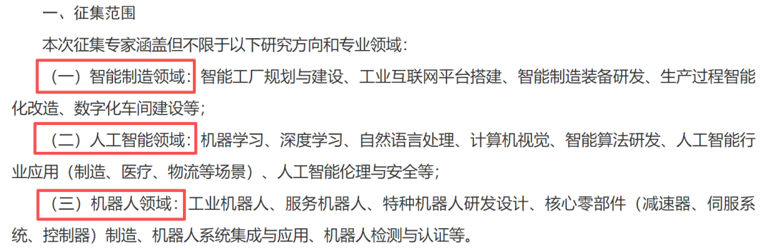 本次天津市面向全国征集专家,精准聚焦智能制造、人工智能与机器人三大前沿领域,并给出了从底层技术到行业应用的具体方向。建议申报者以图中明细为“专业地图”,优先勾选1-2个与自身项目经验、研究成果最匹配的具体方向进行申报,避免选择过泛。请在整理材料时,重点用案例和数据证明您在这些细分领域的实际能力,这比笼统地展示“懂人工智能”或“做过智能制造”更具说服力,能显著提升入库成功率。