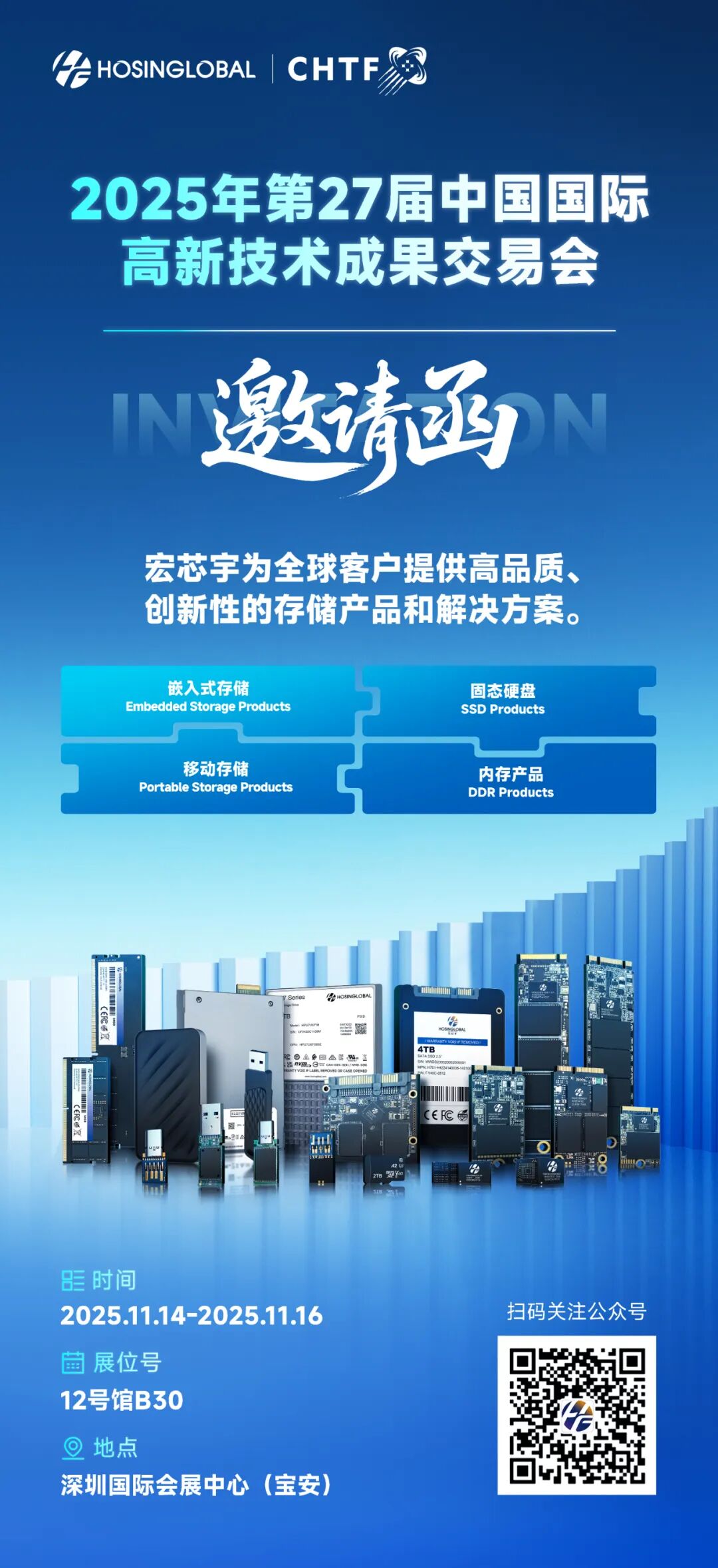 第27届中国国际高新技术成果交易会将于11月14日-16日在深圳国际会展中心(宝安)举办宏芯宇展台12号馆-B30诚邀各位嘉宾莅临指导期待合作 往期回顾REVIEW→喜讯!宏芯宇荣膺“中国独角兽企业”和“深圳瞪羚独角兽企业”,助力存储行业高质量发展存储无限 智联未来!宏芯宇携全栈产品精彩亮相elexcon2025宏芯宇2025湾芯展圆满收官,开启 AI 存储新时代