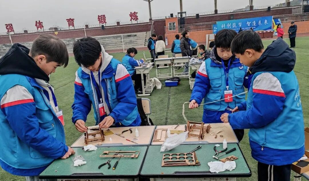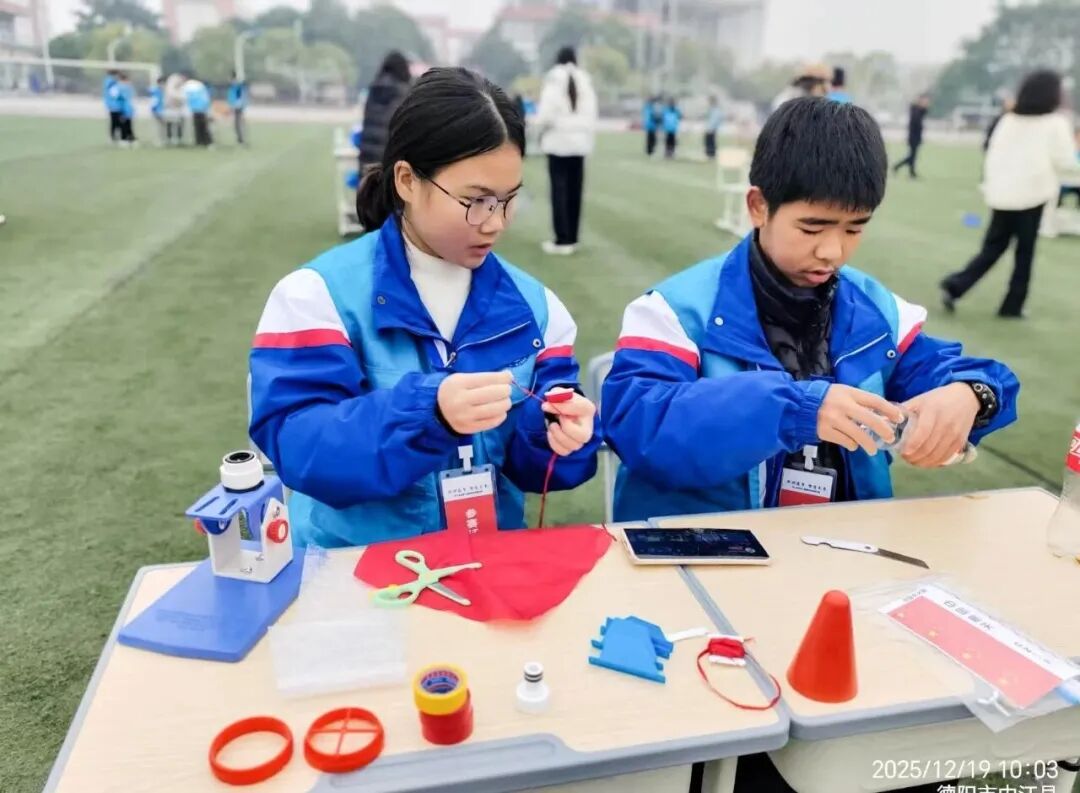 12月19日,中江县2025年未来工程师科技实践大赛在龙台七一中学成功举办。本次大赛以“科创筑梦,智造未来”为主题,由中江县关心下一代工作委员会、县科学技术协会、县教育和体育局联合主办,中江县守志家庭教育促进中心与龙台七一中学共同承办。来自龙台、广福、仓山、兴隆等地初一、初二项目班近600名学生参与活动,其中50余名学生同台竞技,赛事按年级分为两大竞赛组展开角逐。