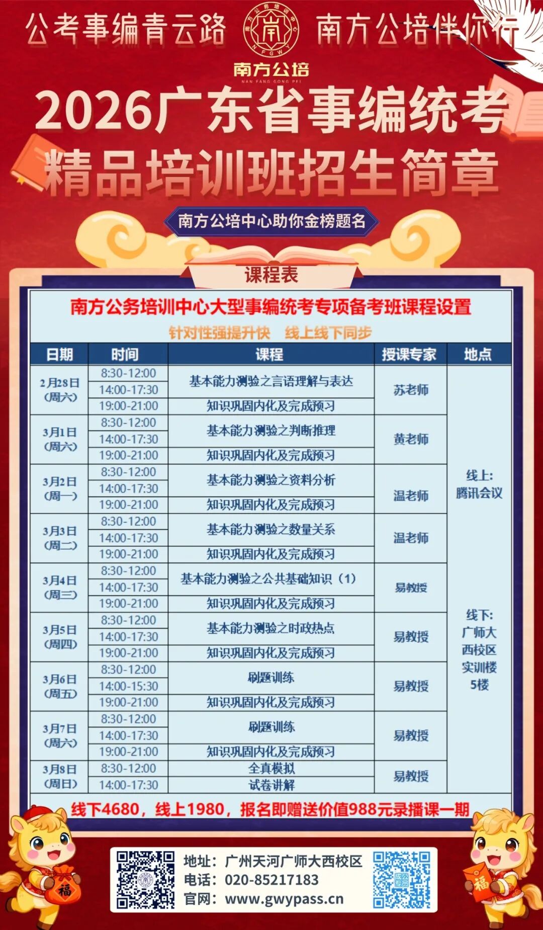 南方公培2026国考省考选调面试培训滚动开班,随报随学,小班精品,考官亲自点评提升快!常年针对广东省境内事业编制、军队文职、国企央企、教师入编、公务员等笔面试课程开班!线上线下同步,考公考编兼顾。联系我们了解更多课程及优惠。