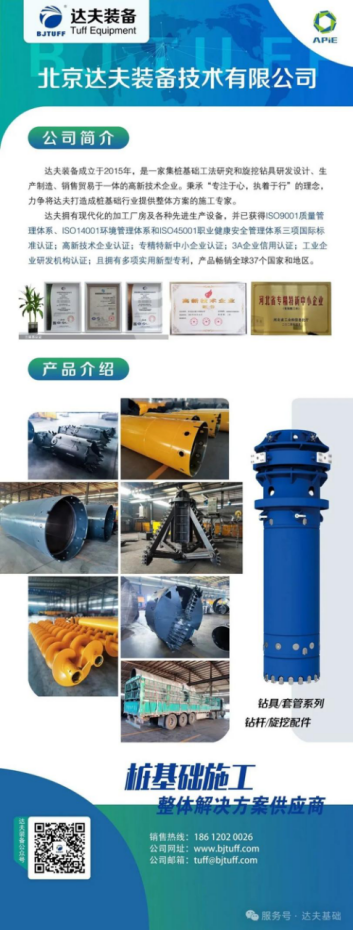 达夫装备成立于2015年,是一家集桩基础工法研究和旋挖钻具研发设计、生产制造、销售贸易于一体的高新技术企业。秉承“专注于心,执着于行”的理念,力争将达夫打造成桩基础行业提供整体方案的施工专家。