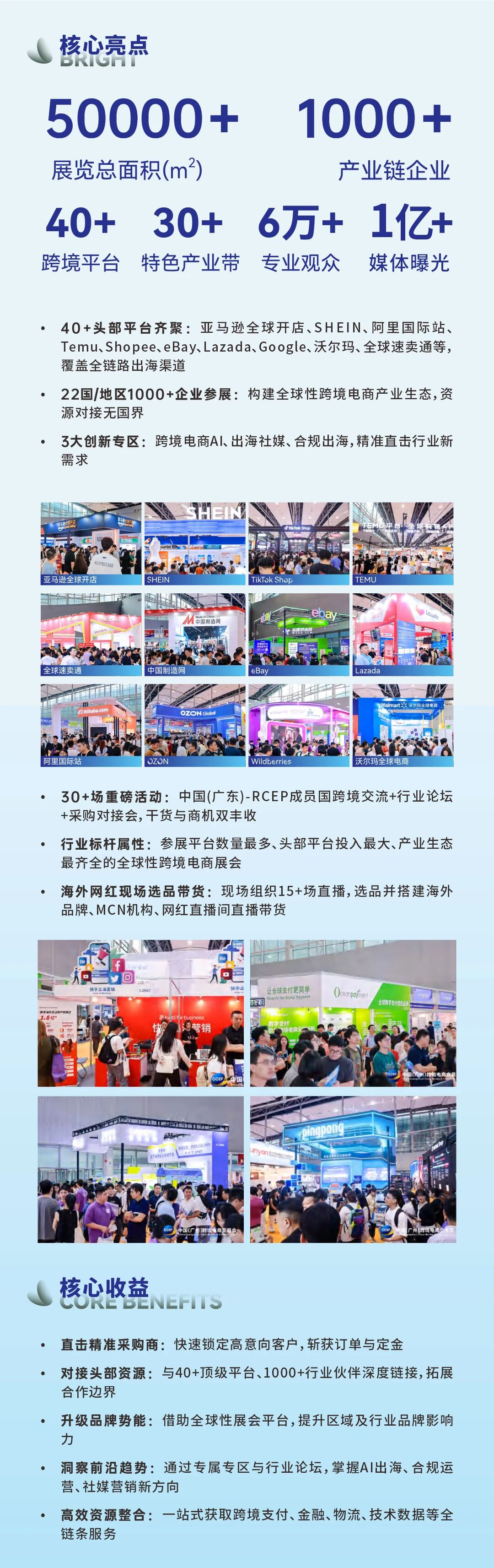 ✅ 行业标杆属性:参展平台数量最多、头部平台投入最大、产业生态最齐全的全球性跨境电商展会