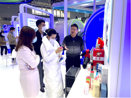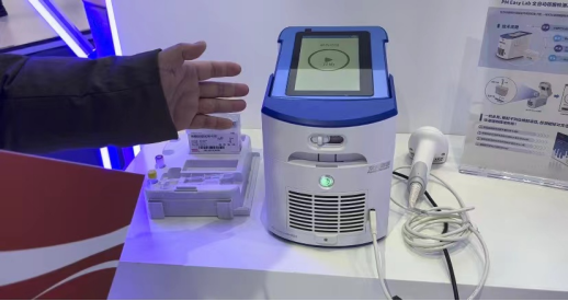 展位上,一个身体小小个、亮起小绿灯的仪器吸引了参展观众的目光。华大因源展位负责人刘国城介绍,“它叫PM Easy Lab全自动核酸检测系统,是我们今年带来的展品之一。它的第一个亮点是方便快速,全自动处理核酸提取至检测报告,只需要两步操作,一小时内能出报告结果。同时,它灵活高效,一次性可以检测24个靶标,而且简单方便,不需要专业的实验室也能操作,更厉害的是,它比同类多重检测POCT灵敏度要高出2-5倍!”就是这样一个小盒子,能在一个小时内出核酸检测结果,觅因溯源,无微不至。