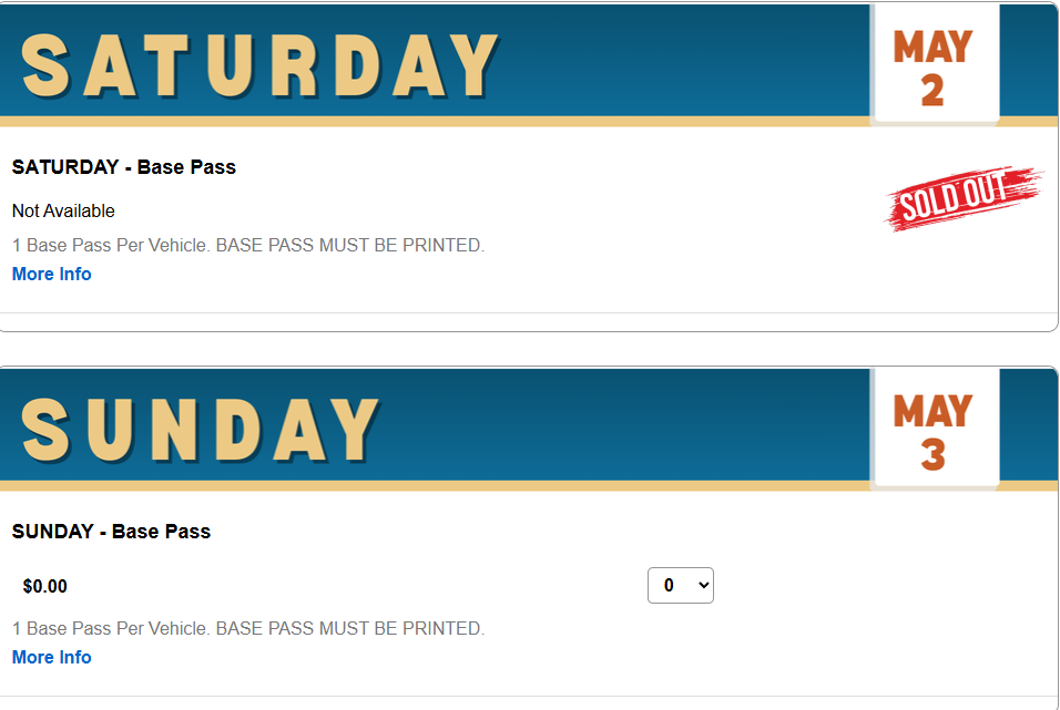• 门票/停车证注册开放时间: 2026年3月8日中午 12:00 PM (EST)