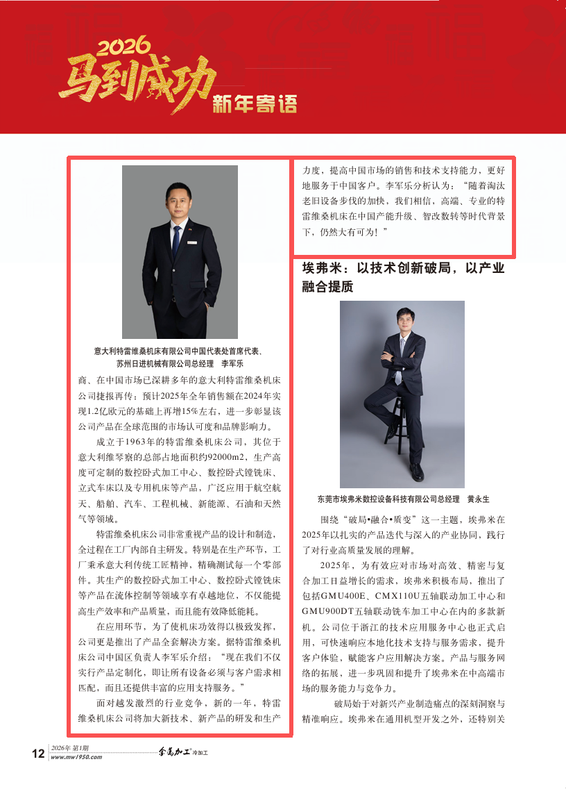 2026年伊始,科技期刊《金属加工》新年第1期刊发《年销售额增15%!意大利特雷维桑抢占高端机床“高地”》。