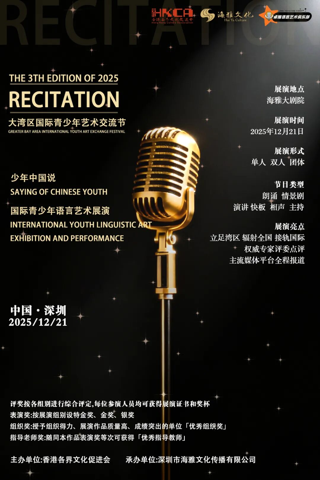 大湾区国际青少年文化艺术交流节是香港各界文化促进会倾力打造的极具权威性、专业性、高水平的全国大型青少年艺术交流活动,旨在发现、培养、推选出一批具有时代性、民族性特征的青少年艺术人才,为文化艺术行业提供精准人才支撑。促进新时代的湾区青少年与祖国发展同向同行,在新征程上为港澳及内地文化艺术产业发展贡献力量,为中国式现代化汇聚磅礴青春力量,共同推动中华民族伟大复兴。