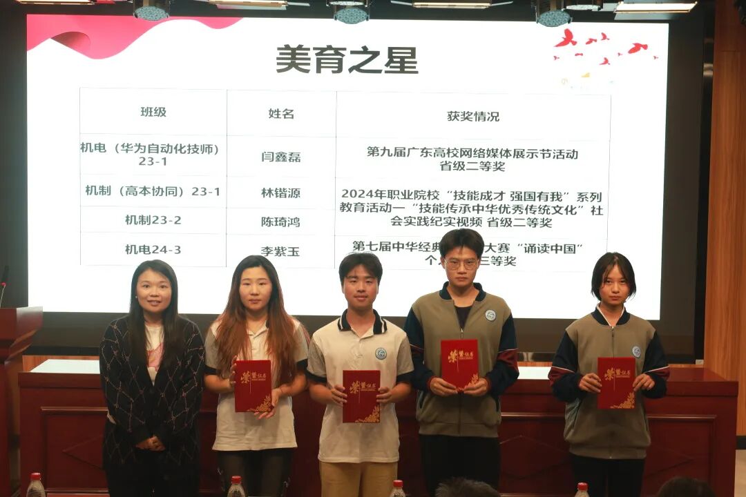 本次大会设立了“德育之星”、“智育之星”、“体育之星”、“美育之星”、“劳育之星”,现场表彰了国家奖学金获得者、学业进步奖获得者、科技创新活动获奖者、专业竞赛获得者等多项奖项。出席表彰大会的领导和嘉宾为获奖学生代表颁发了荣誉证书与奖品,以资鼓励。