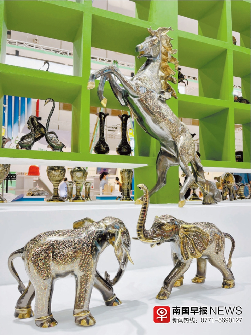 ▲D5展厅巴基斯坦展位展示的工艺品。南国早报记者 苏华摄