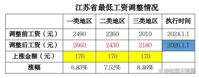 12月29日江苏省人社厅发布了《关于调整全省最低工资标准的通知》,宣布从2026年1月1日起调整全省最低工资标准