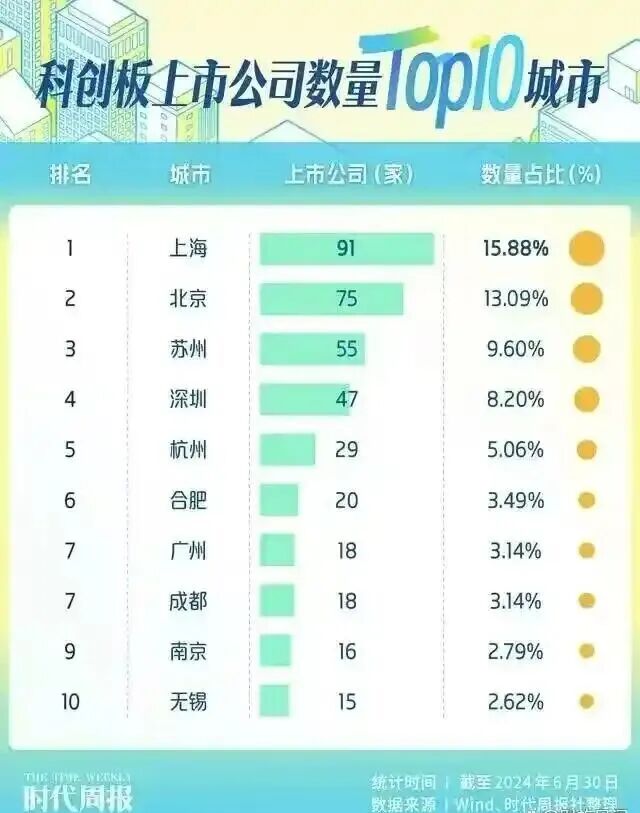 科创板10强城市方面,苏州2025年大爆发,截至今天,科创板上市公司已达58家,进一步巩固第三的位置,超过深圳。