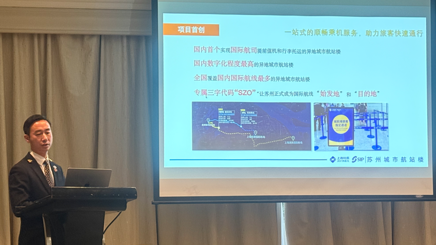 苏州工业园区综保产业服务有限公司礼宾部的中国金钥匙苏州地区执委会秘书长张杰先生为与会人员详细的介绍了苏州落实长三角一体化发展国家战略和沪苏深化一体化发展国家方案的两地创新合作项目苏州城市航站楼。项目定位于集航空服务、城市展示、商务服务为一体的“苏州之窗•多功能城市会客厅”。自23519日正式运营以来,已累计服务客户超22万人次。在20245月,国际航空运输协会(IATA)总部正式批复“苏州城市航站楼”专属三字代码“SZO”,让苏州正式成为了国际旅行的目的地和始发地。