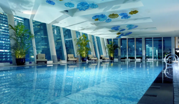酒店于紫金楼和浦江楼分别设有两间长约25米和20米的游泳池和两间共提供约50台健身器材的健体中心,健身器材选自美国健身设备品牌星驰(Star Trac)和力健(Life Fitness)。