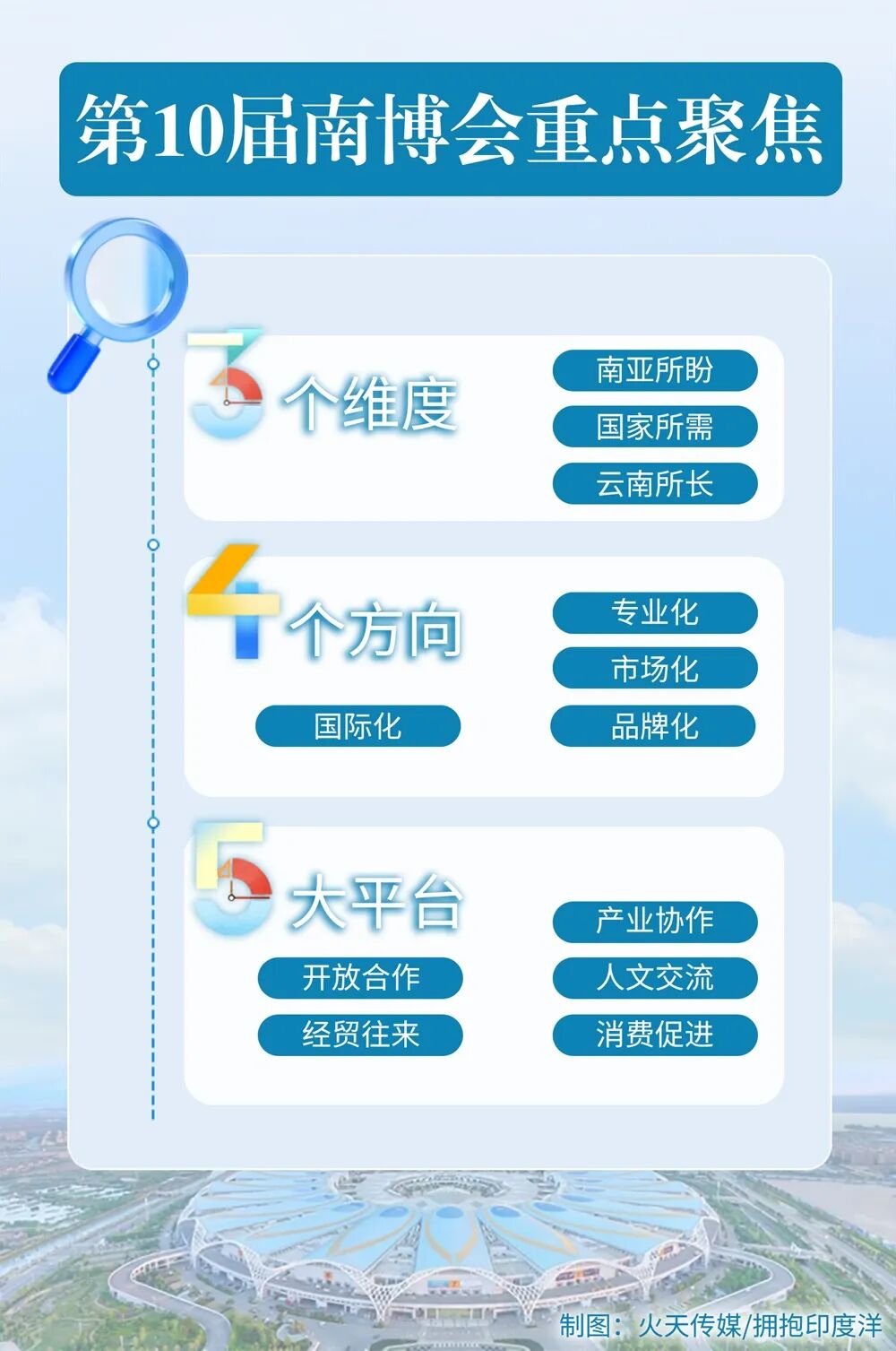 为进一步凝聚“团结协作、共谋发展”的共识,不断打造新的合作增长点,云南省人民政府和商务部将于今年6月在云南省昆明市共同举办第10届南博会,聚焦“南亚所盼、国家所需、云南所长”三个维度,立足“国际化、专业化、市场化、品牌化”四个方向,深度构建“开放合作、经贸往来、产业协作、人文交流、消费促进”五大平台,精心打造一场高水平开放的盛会。