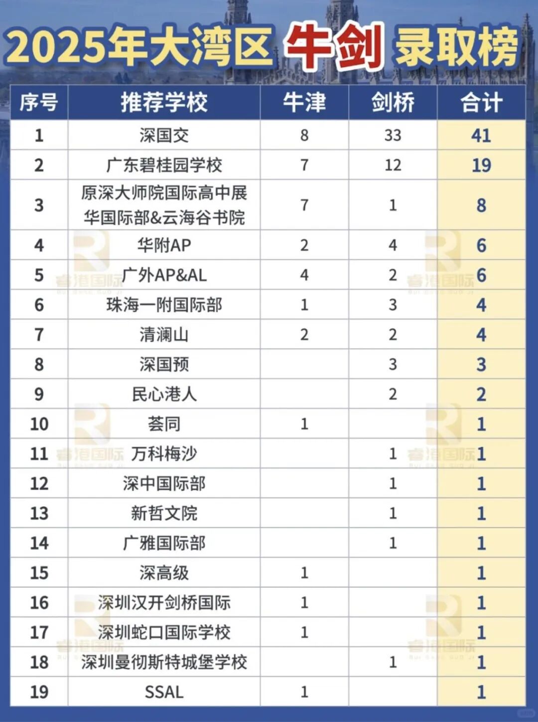 深圳国际预科学院:3枚 录取跻身新秀梯队,或成未来潜力校。