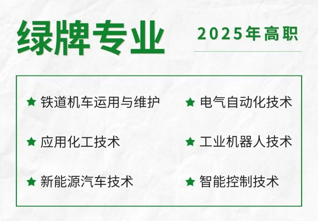 据长期与教育部、人社部等合作,被上千所高校用于教学改革与专业调整,获主流媒体广泛引用的麦可思公司研究公布的2025年高职专科(大学专科)红黄绿牌专业,连续3年来就业前景最好、待遇最高的高职专科绿牌专业有铁道机车运用与维护、电气自动化技术、应用化工技术、工业机器人技术、新能源汽车技术、智能控制技术等6个专业。