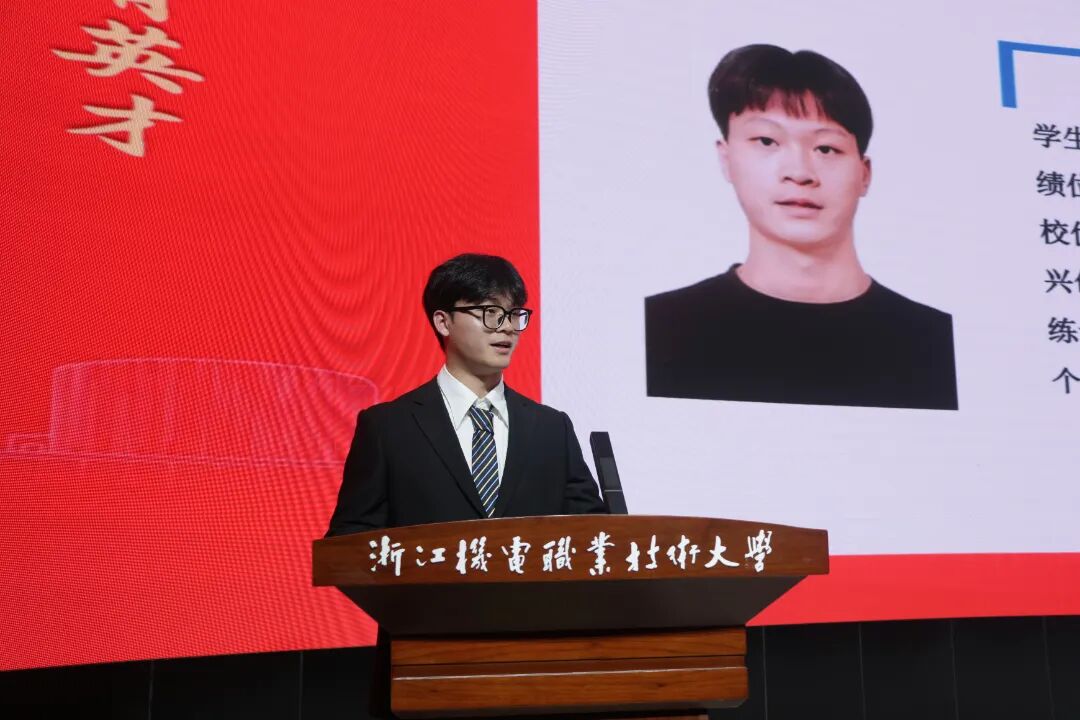 随后,王子宝宣读了2024-2025学年表彰文件。本次表彰涵盖多个奖项,包括国家奖学金、浙江省政府奖学金、国家励志奖学金、校级奖学金获得者,国家级及省级A类学科竞赛获奖者,三好学生、优秀学生干部,优良学风班及文明寝室等先进个人与集体。一份份荣誉的背后,是学子们的勤勉耕耘与不懈拼搏,是班级与寝室的团结协作与共同进步,他们用实际行动诠释了智能制造学子的责任与担当。