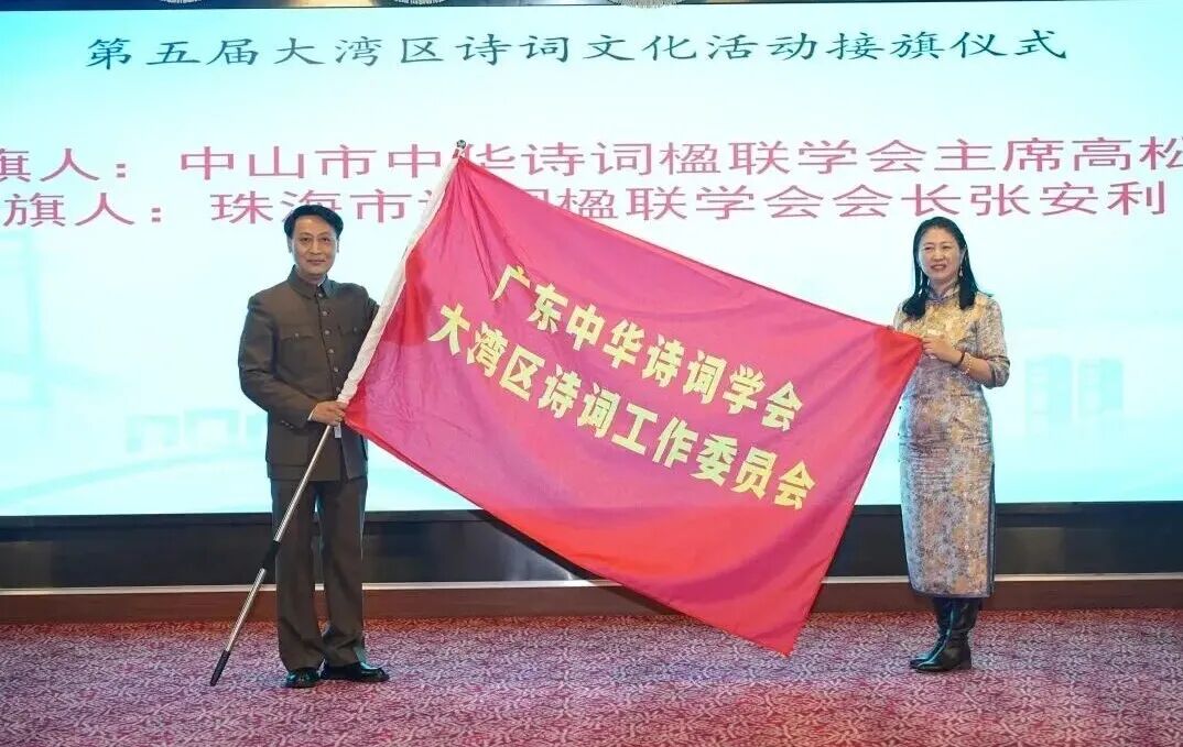 备受瞩目的承办方会旗交接仪式同步举行,珠海市诗词楹联学会正式接过承办权,将负责筹备下一届(2026年第五届)粤港澳大湾区中华诗词创作采风活动。