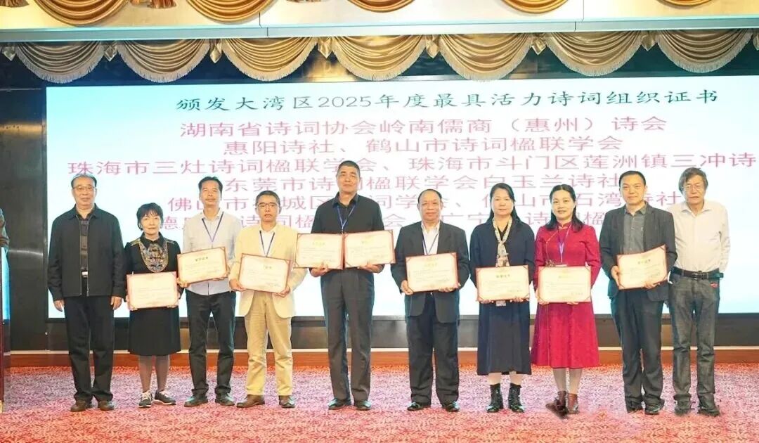 黄高贤、谢玉清、吴畅燊、赵必球、陆葱等分别获“大湾区2025年度诗词活动突出贡献奖”。