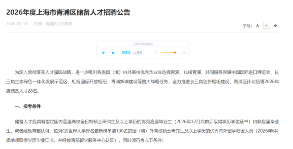 2026 年开年,上海多区重磅推出人才储备计划,留学生可优先落户、直通体制内!